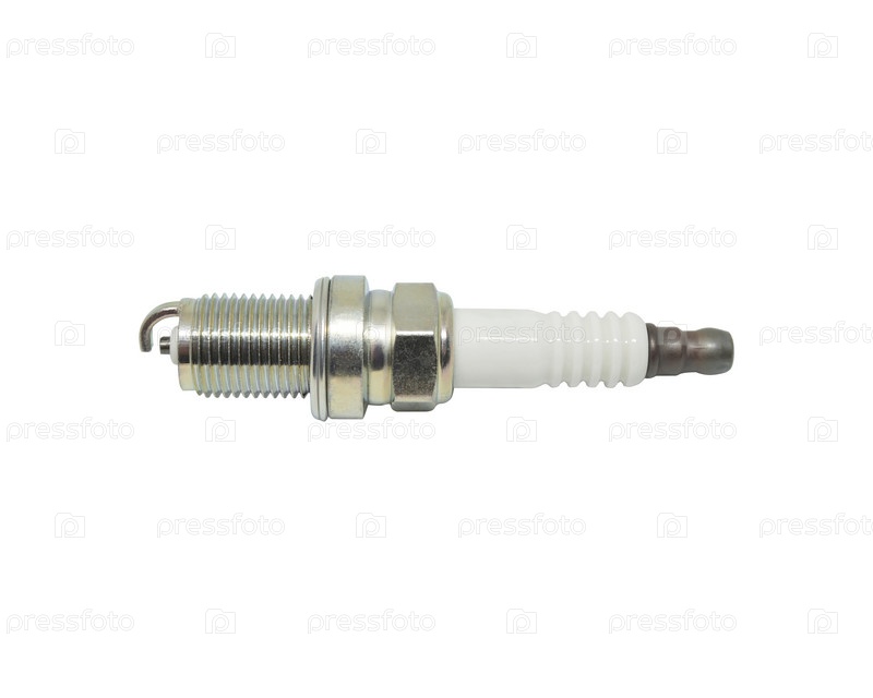 Свеча зажигание на белом фоне. Автомобильная запчасть