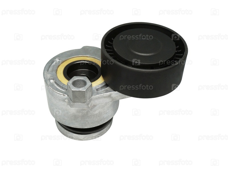 Ролик ремня генератора на белом фоне. Автомобильная запчасть