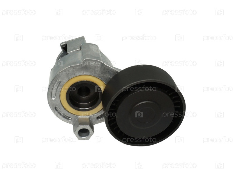 Ролик ремня генератора на белом фоне. Автомобильная запчасть