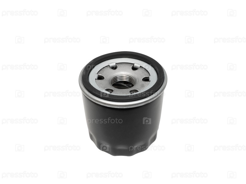 Масляный фильтр на белом фоне. Автомобильная запчасть