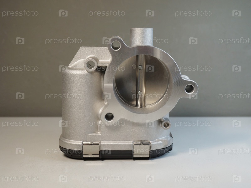 Дроссельная заслонка на сером фоне. Автомобильная запчасть