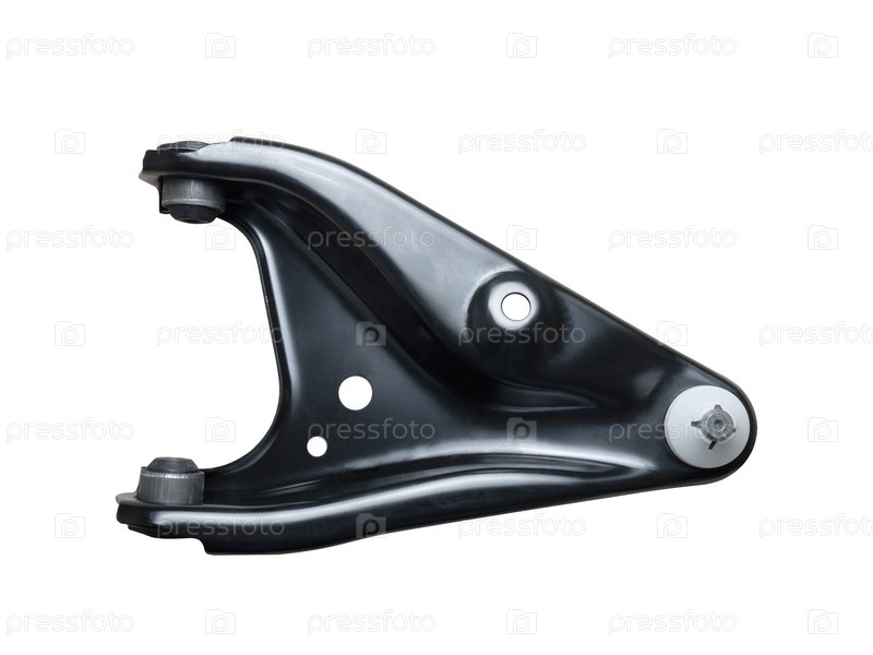 Рычаг подвески на белом фоне. Автомобильная запчасть