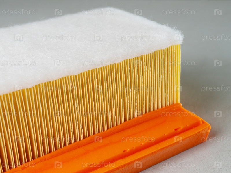 Воздушный фильтр крупным планом на светлом фоне. Автомобильная запчасть