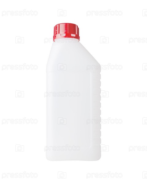 Белая пластиковая бутылка с красной крышкой на белом фоне