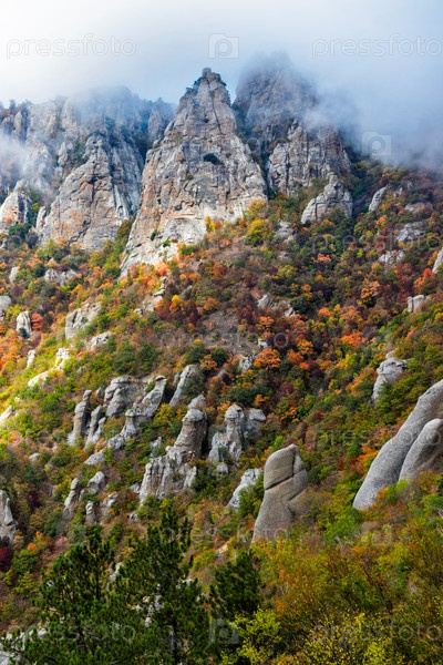 Долина привидений в горах крыма в осенний день