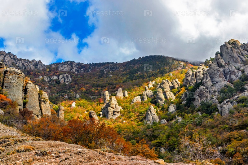 Долина привидений в горах крыма в осенний день