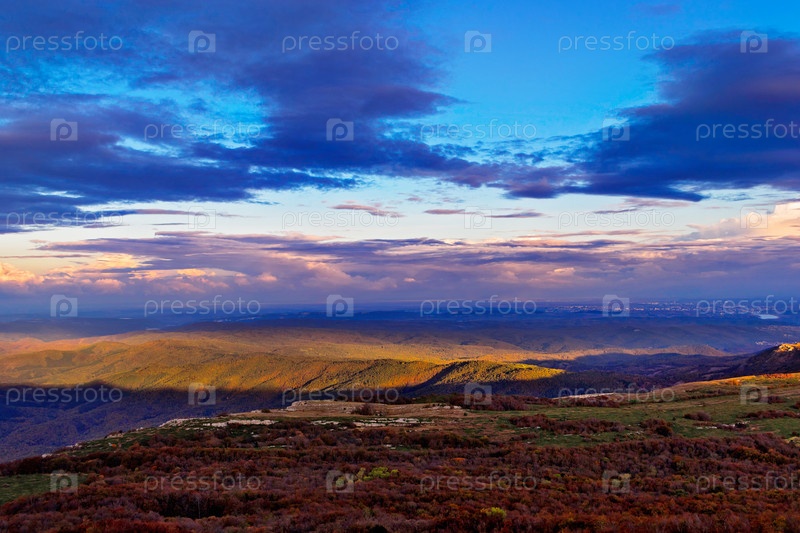 Панорама плато чатыр-даг ранним утром на рассвете