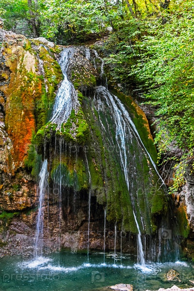 Красивый водопад среди леса в горах