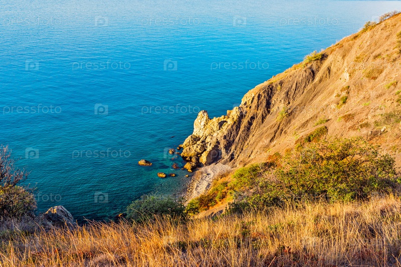 Красивый морской залив среди скал солнечным летним утром