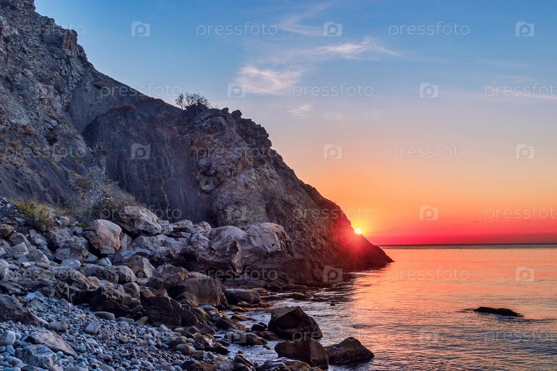 Солнце встает над морем ранним утром на рассвете