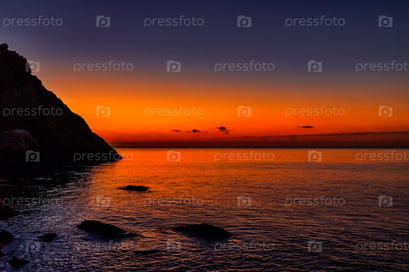 Солнце встает над морем ранним утром на рассвете