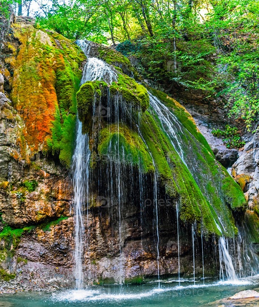 Красивый водопад среди леса в горах