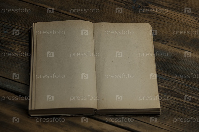 Старая пустая книга открыта на деревянном столе
