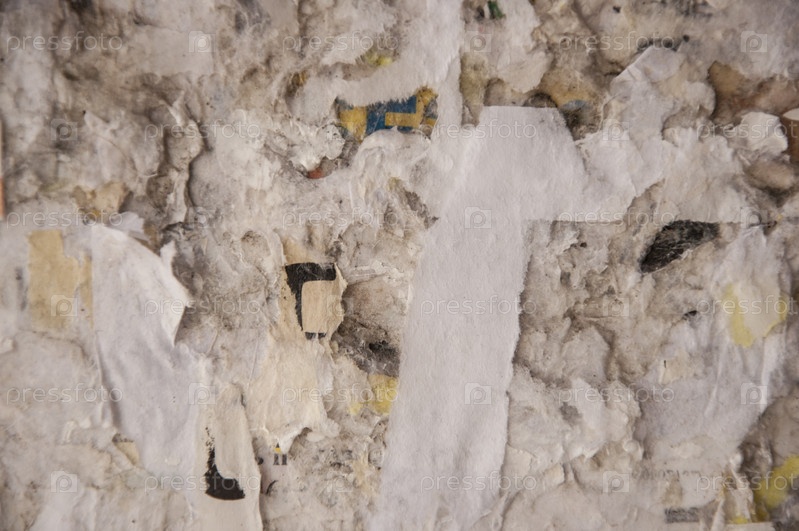 Текстура рваного клееного бумажного флаера на изношенной городской стене