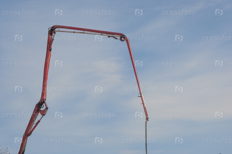 Строительный кран со стрелой на фоне голубого неба, строительство