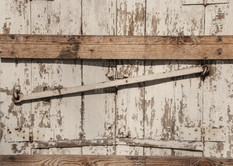 Фасад заколочен деревянными досками. Заколоченная деревянная ставня в старом заброшенном доме