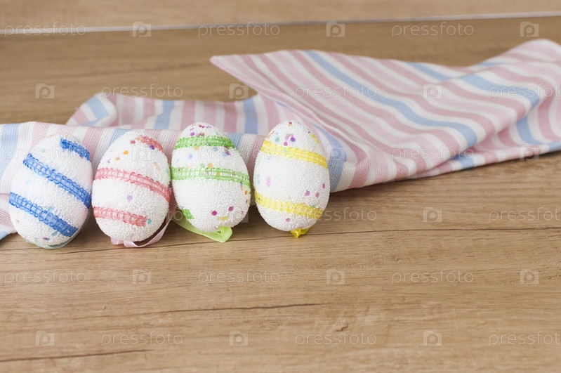Красочные пасхальные яйца с салфеткой. Крупный план