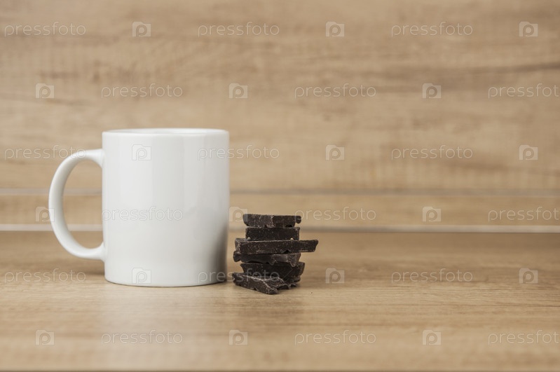 Белая кружка на деревянном столе
