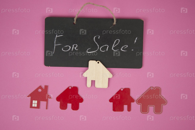Концепция недвижимости. Дом на продажу. Продается настоящая старая доска с миниатюрным домом