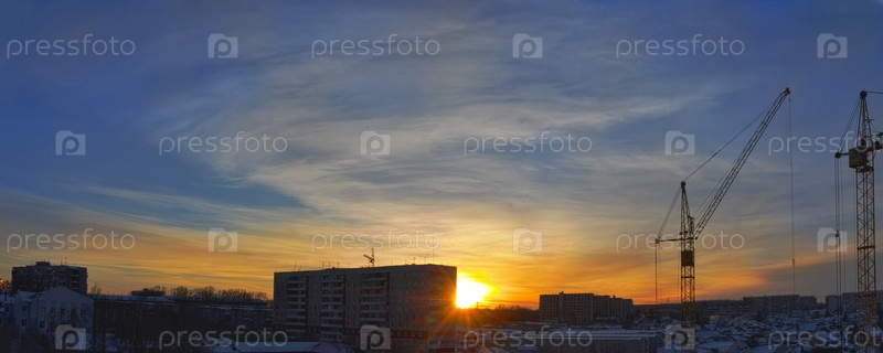 Город, зима, закат