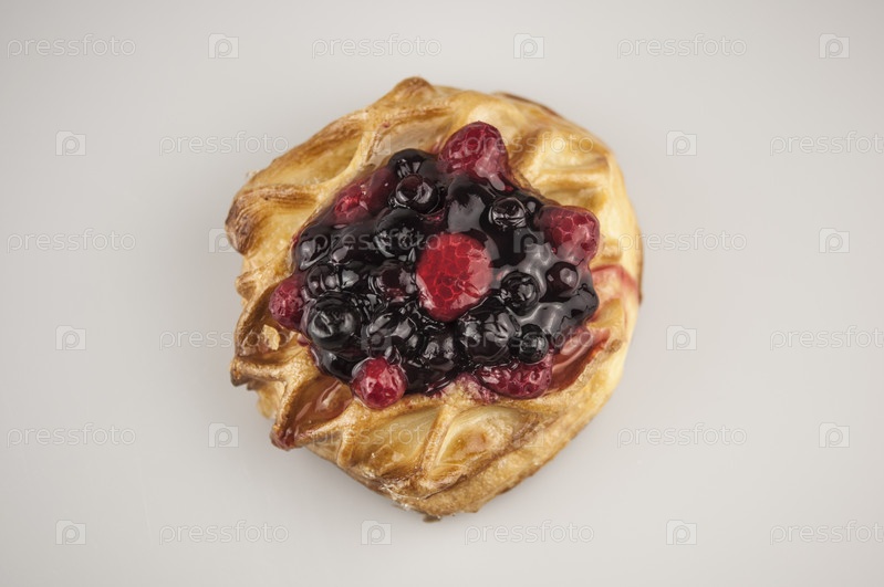 Датская выпечка с фруктами на белом фоне