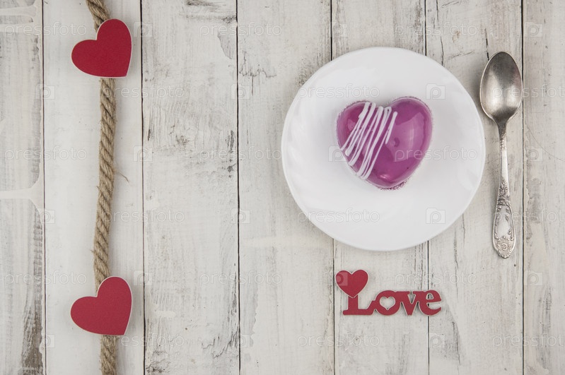 Слово любовь красный торт в форме сердца находится на белом деревянном столе. Романтическое свидание. завтрак. День рождения. Свадьба. Праздничный день