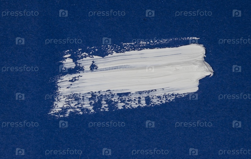 Структурная краска белого цвета на синем фоне. краску мазать. фон мазка кистью