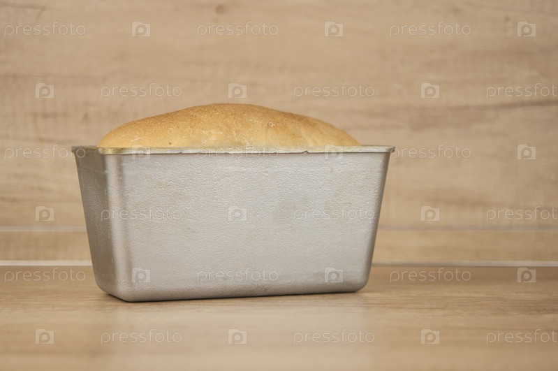 Домашний поджаренный цельнозерновой хлеб и металлическая форма для хлеба