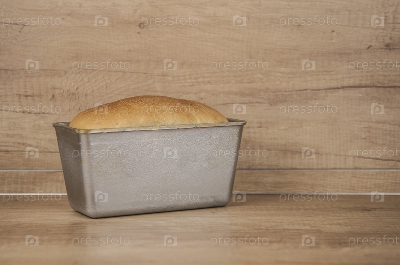 Домашний поджаренный цельнозерновой хлеб и металлическая форма для хлеба