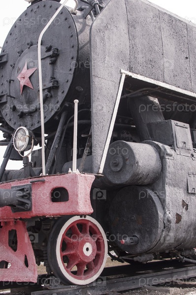Россия, Тюмень, городской парк: элементы старинного паровоза