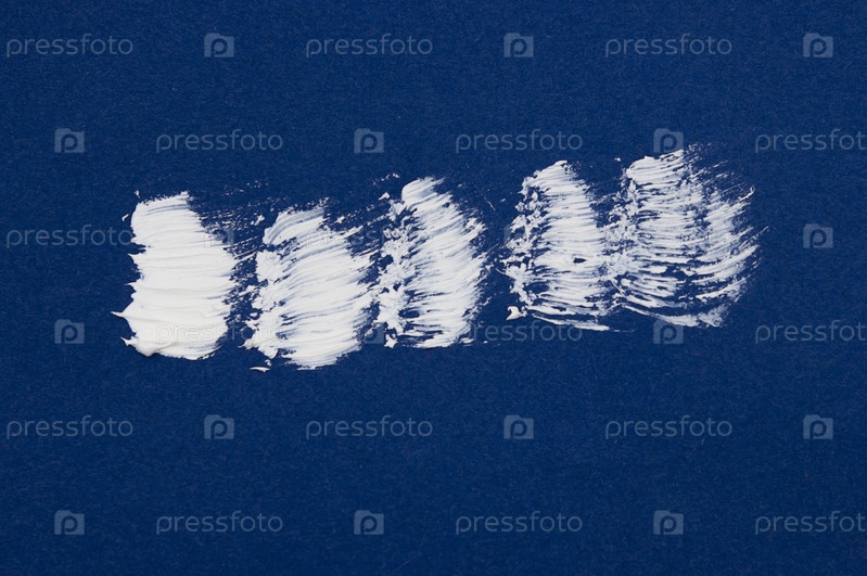 Структурная краска белого цвета на синем фоне. краску мазать. фон мазка кистью