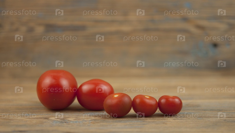 Крупный план свежих, спелых помидоров на деревянном фоне
