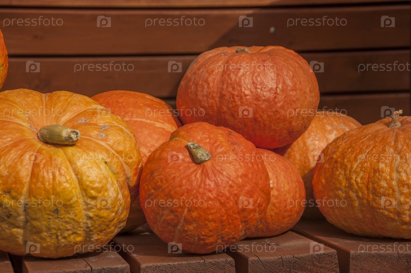 Осенний фон. Спелые тыквы на деревянном фоне. Концепция благодарения и хэллоуина