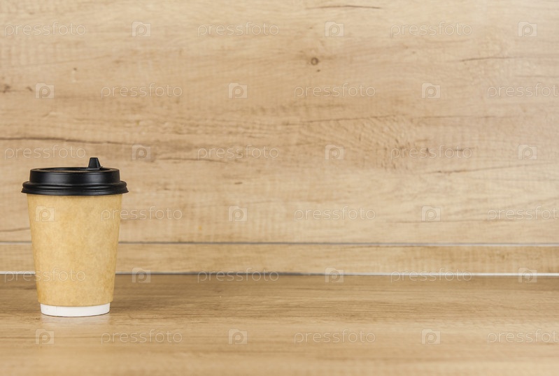 Бумажная чашка кофе на деревянном столе
