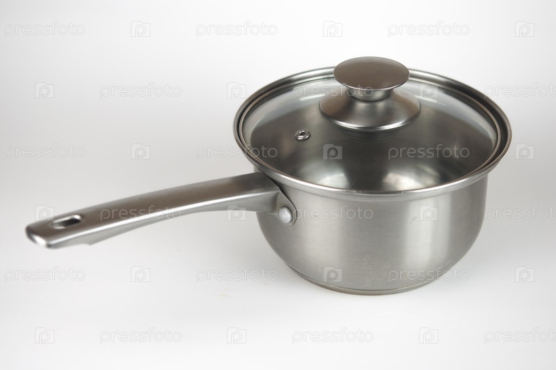 Сковорода со стеклянной крышкой на белом фоне
