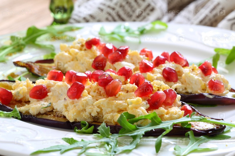Запеченные баклажаны с орехами, сыром и гранатом