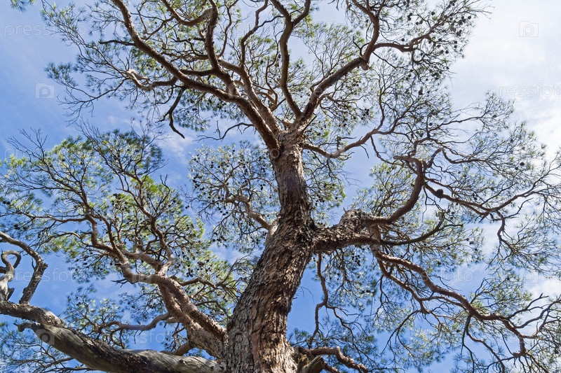Крона реликтовой сосны на фоне неба. Новый Свет, Крым