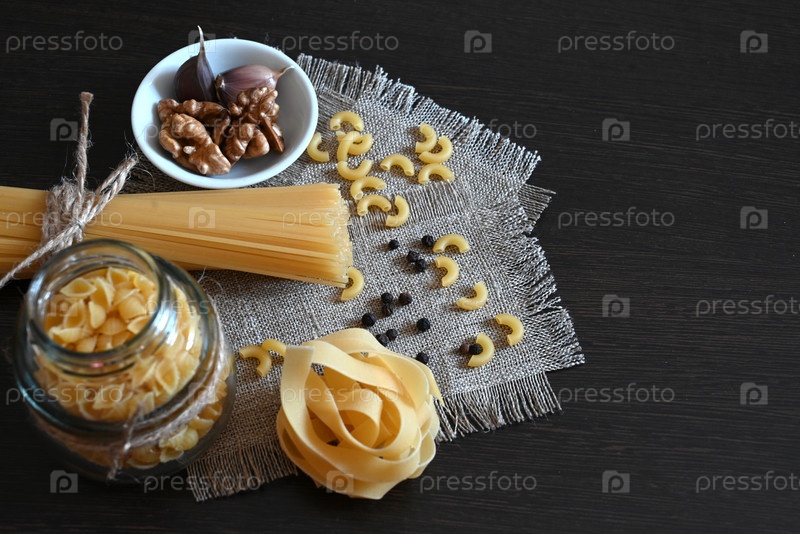 Различные макароны. Концепция приготовления пищи. Вид сверху