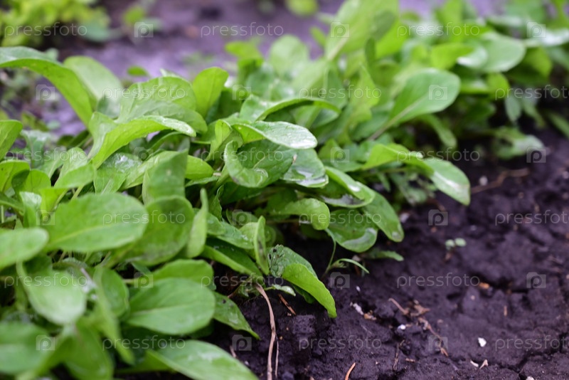 Процесс выращивания рукколы рукколы. Молодая руккола руккола в открытом поле. Органическое выращивание в саду
