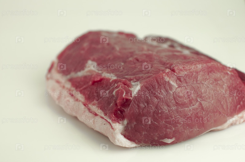 Большие куски сырой свиной шеи на белом фоне. крупный план, пространство для копирования
