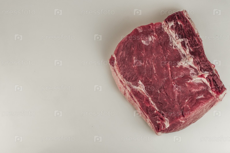Большие куски сырой свиной шеи на белом фоне. крупный план, пространство для копирования