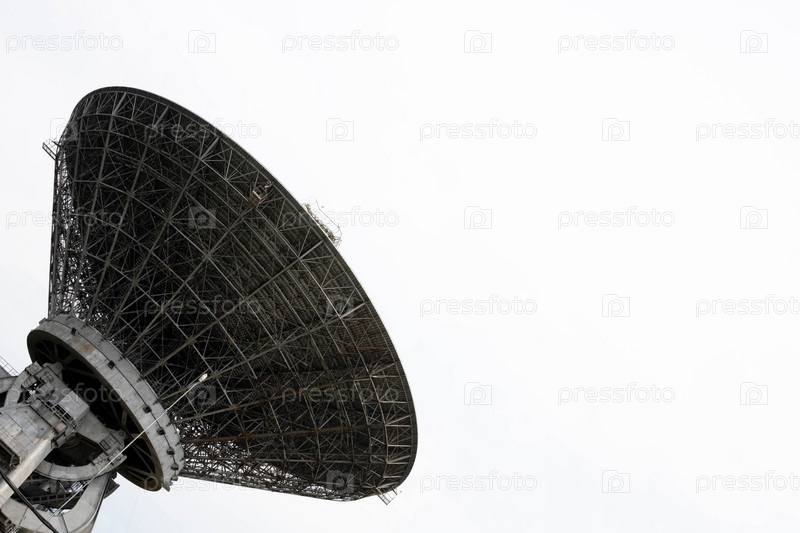 Силуэт спутниковой антенны или радиоантенны. Космическая обсерватория или радар ПВО