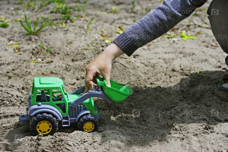 Детская игра с пластиковым экскаватором