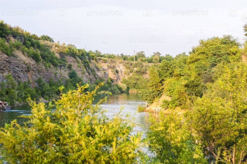 Пейзаж природного каньона на закате. Скалистый берег. На вершине каньона
