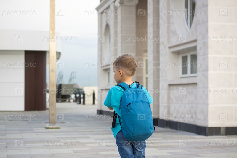 Мальчик на скутере по набережной города. Путешествие. Рюкзак на спине. Лицо выражает естественные радостные эмоции. Не постановочные фото из жизни