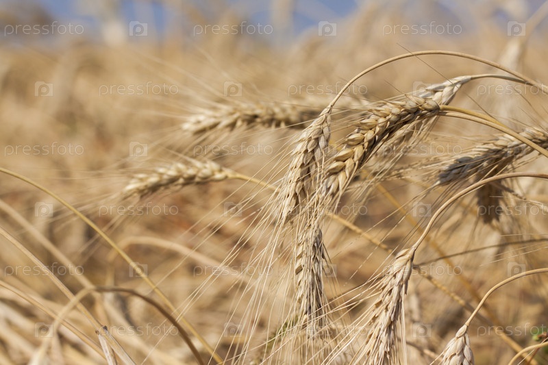 Сельскохозяйственное поле. Спелые колосья пшеницы в солнечный день. Концепция богатого урожая