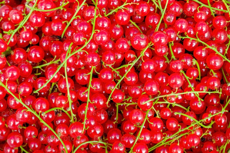 Красный ягодный фон. Грозди красной смородины заполняют все изображение