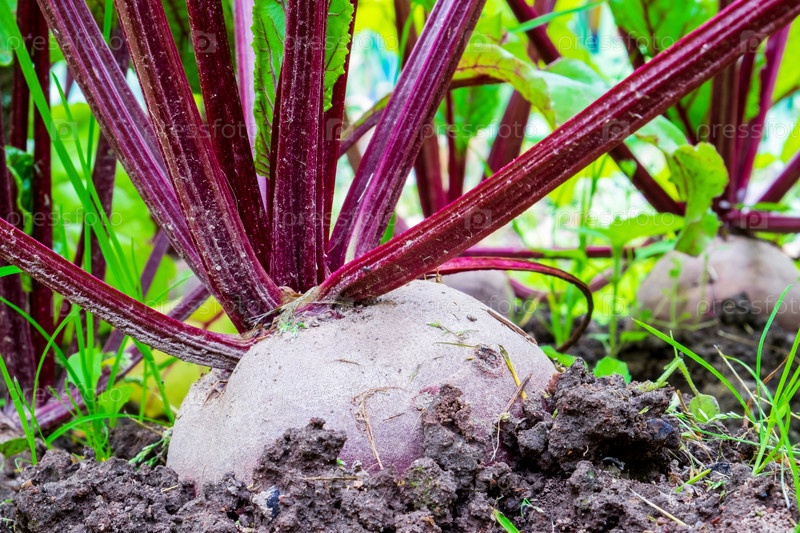 Свекла. Корнеплод в земле крупным планом. Домашнее овощеводство