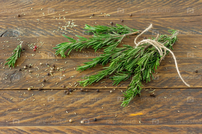 Розмарин на деревянной доске с сухими семенами