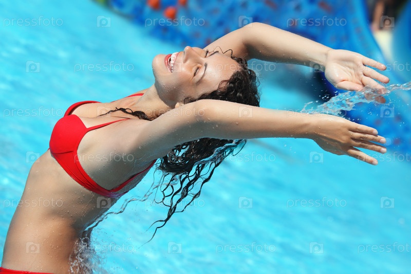 Молодая женщина купается в бассейне